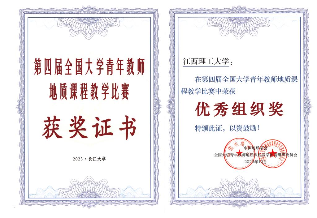 在青年教师地质课程教学比赛中,来自全国69所高等院校的176名青年教师,组委会和专家仲裁组90余位专家、教学名师参加了本届比赛决赛,经过激烈的比拼,我校资源与环境工程学院选派的青年教师刘强博士、李瑞雪博士、黄震博士凭借出色的表现,均荣获全国二等奖,充分展现了我院青年教师在高等教育领域的突出实力和优秀教学水平。此外,我校还荣获“优秀组织奖”。